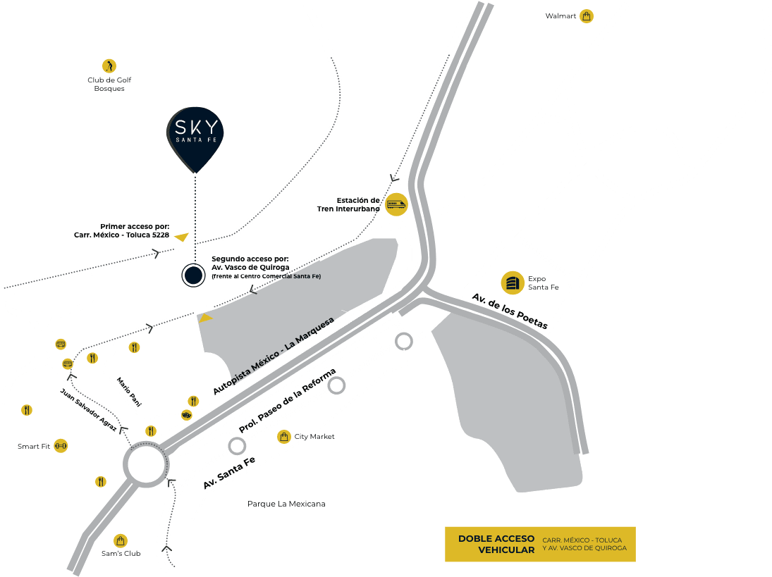 OtrosCity Market Walmart Sam´S Club Chedraui Select Club de Golf Bosques Expo Santa Fe Smart Fit Estación de Tren Interurbano